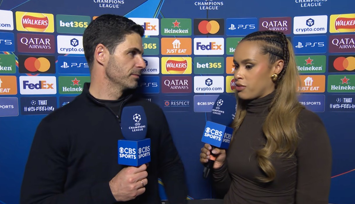 阿森纳主场0-0战平葡萄牙体育,两回合总比分1-0晋级欧冠半决赛,阿尔特塔赛后接受了CBS体育的采访。